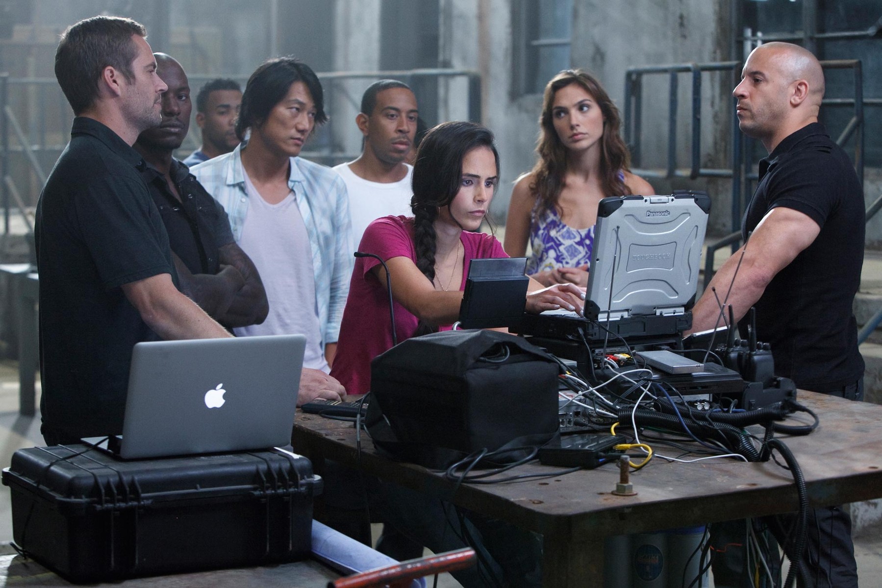 Vin Diesel¤ÈPaul Walker¤¬¼Ö¤Î¸å¤í¤ËµðÂç¶â¸Ë¤òÉÕ¤±¤ÆÁö¤ë¥·¡¼¥ó¤Ç¤Ï¡¢