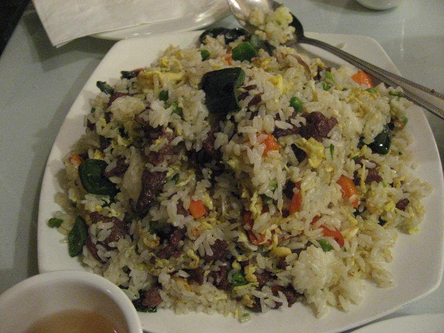 何かスープ系が頼みたかった僕らは、とりあえずと、その店の名物らしい、「Pork Hot Pot」と、牛肉と野菜のチャーハンを頼みました。